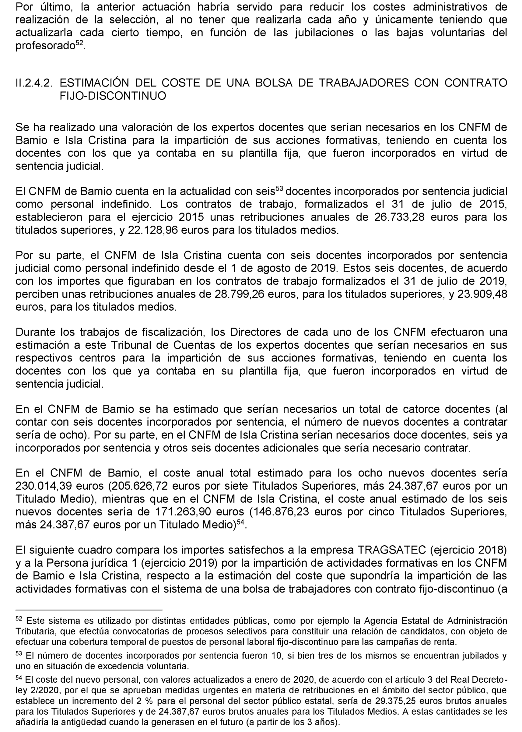 La Comisión Mixta para las Relaciones con el Tribunal de Cuentas, en su sesión del día 19 de mayo de 2022, a la vista del informe remitido por ese Alto Tribunal acerca del Informe de fiscalización operativa sobre la Formación Profesional del Instituto Social de la Marina, ejercicio 2018, acuerda:
