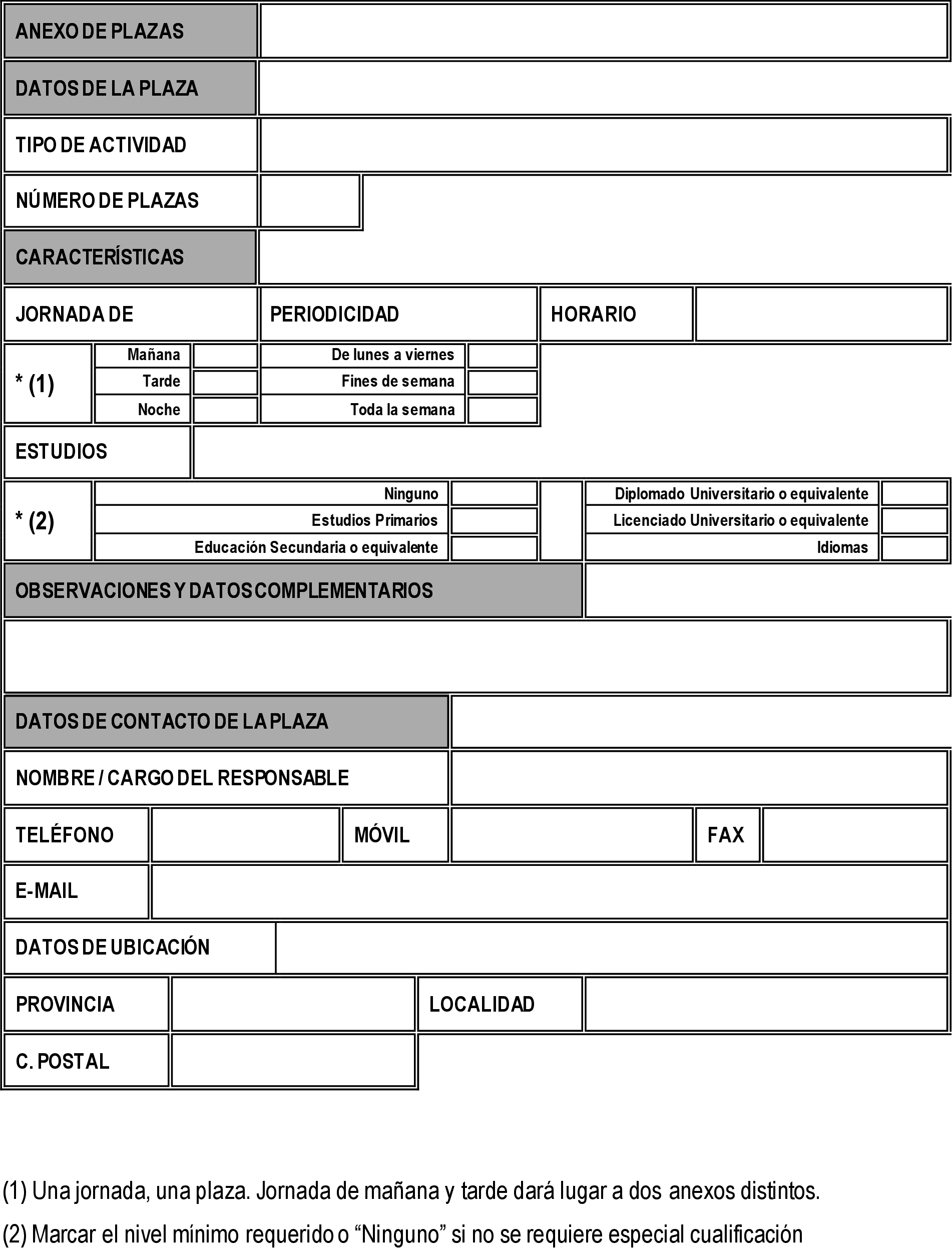 1. La Asociación deberá remitir a los Servicios de Gestión de Penas y Medidas Alternativas de la Secretaría General de Instituciones Penitenciarias, el anexo II cumplimentado con los datos sobre las plazas que se indican.