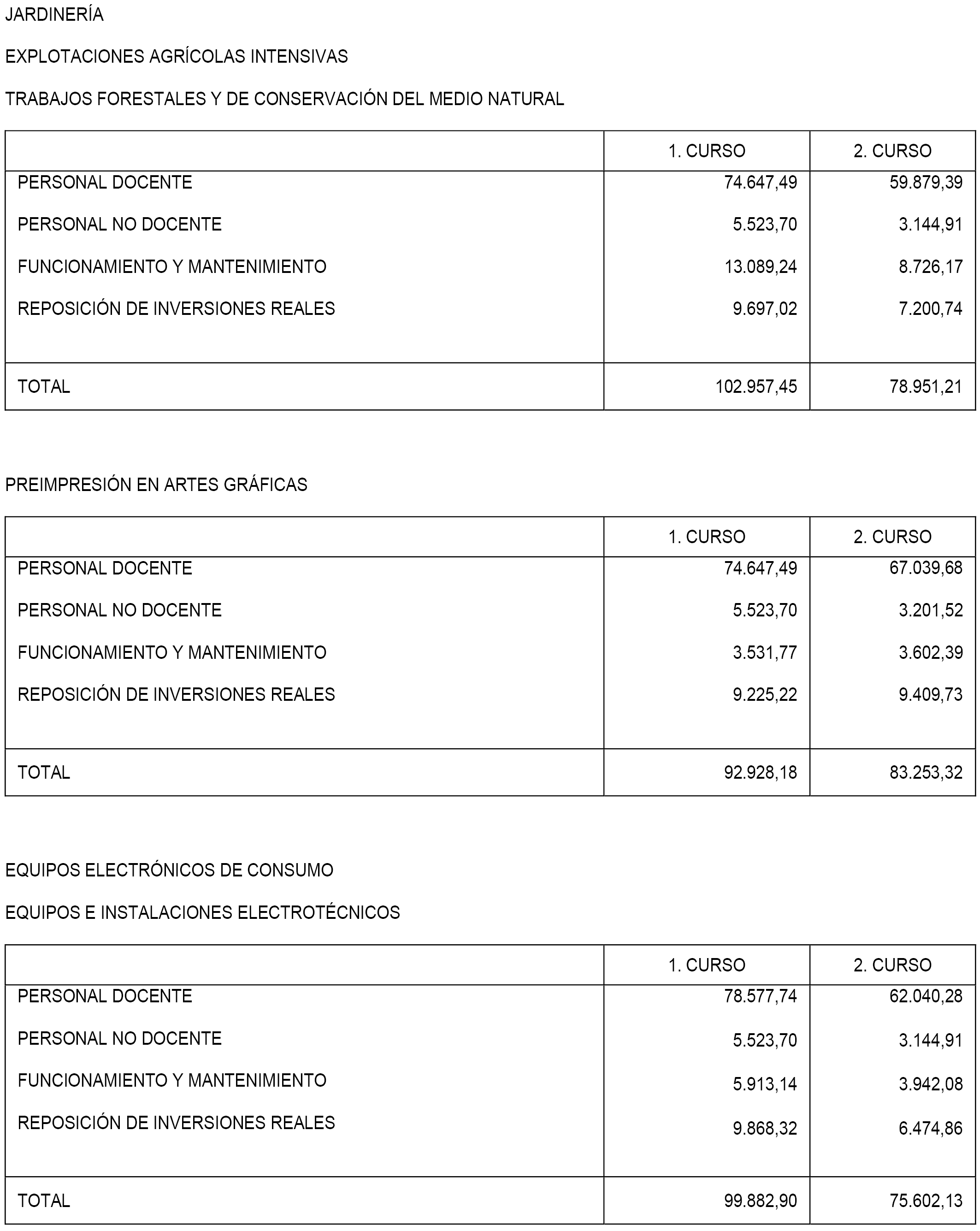 1. Los componentes del módulo y sus respectivos importes por cada nivel educativo son los fijados en el Anexo IV de esta ley.