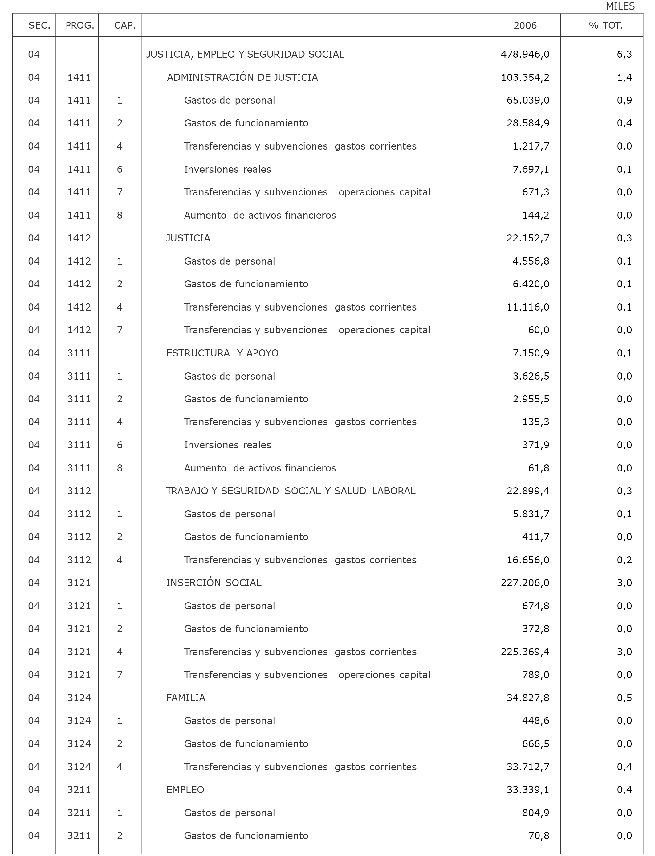 1. En los presupuestos de explotación y de capital de las sociedades públicas no incluidas en el artículo 4 de la presente ley, se aprueban para cada sociedad las dotaciones que se conceden por un importe total de 602.520.542 euros y 314.487.345 euros, respectivamente, y por un importe total de 243.716.388 euros en cuanto en cuanto al estado de compromisos futuros, cuyo desglose en ejercicios posteriores al 2006 será el que se detalla en el Anexo I.