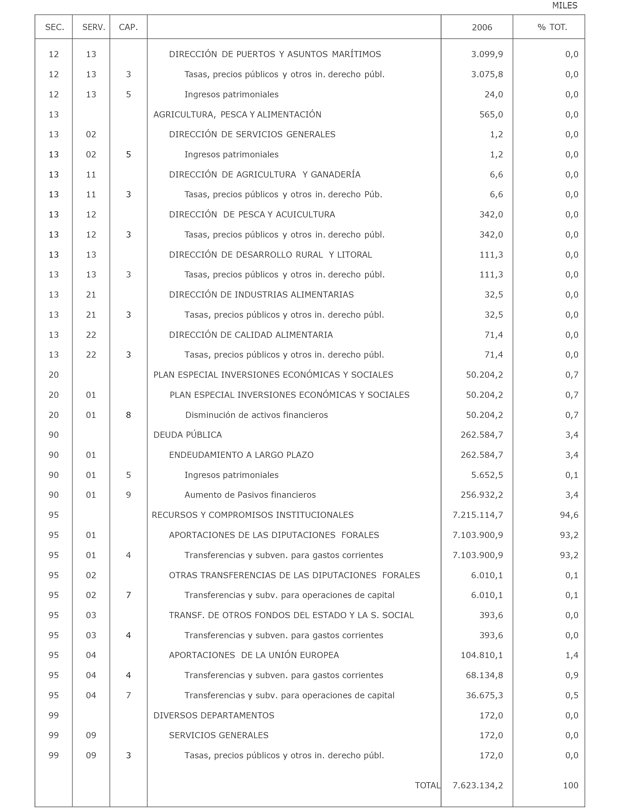 2. El estado de ingresos del presupuesto de la Administración de la Comunidad Autónoma de Euskadi asciende a la cantidad total de 7.623.134.200 euros. En particular, se incluyen 50.204.234 euros, correspondientes a remanentes de tesorería propios.
