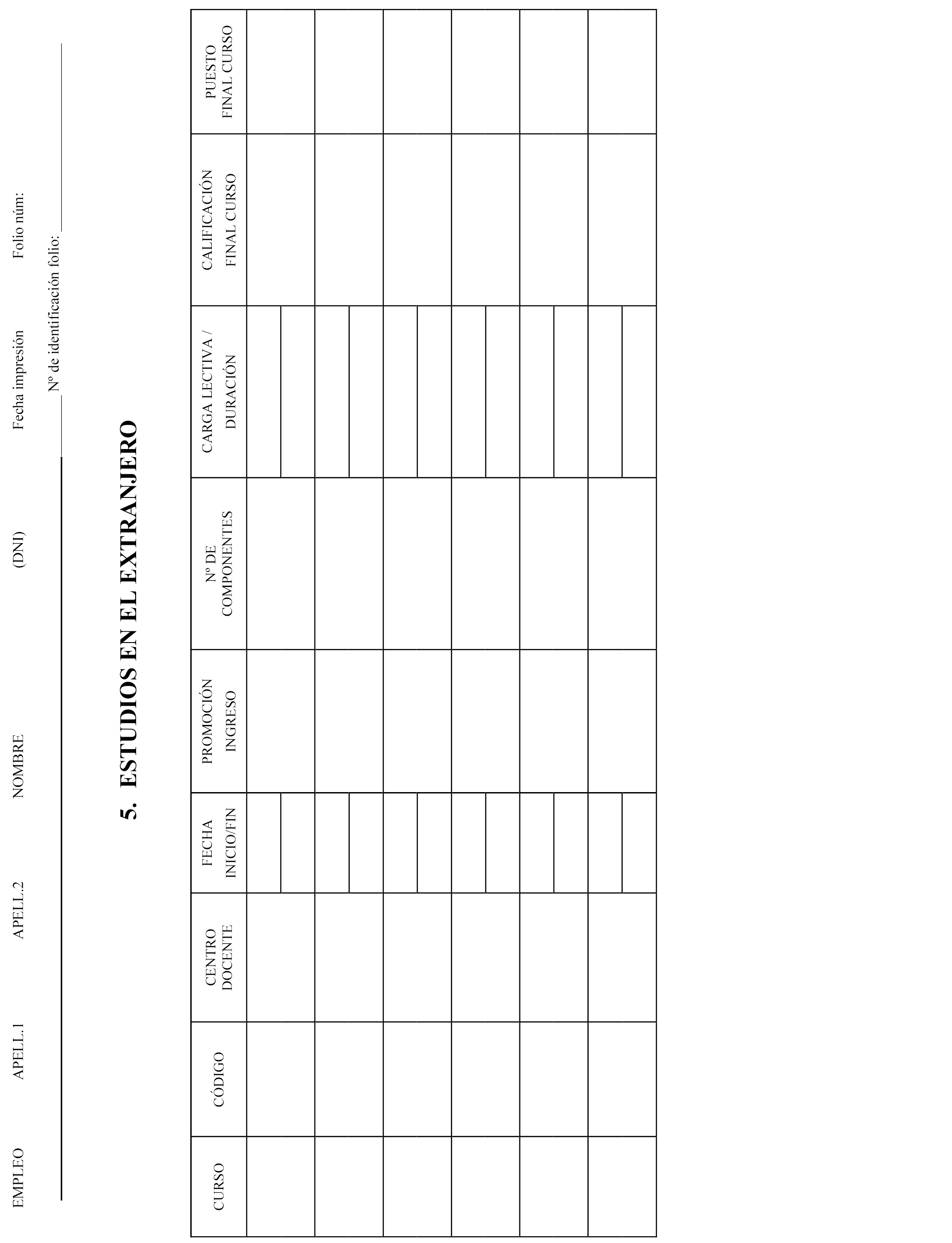Registro n.º 5. Estudios en el extranjero.