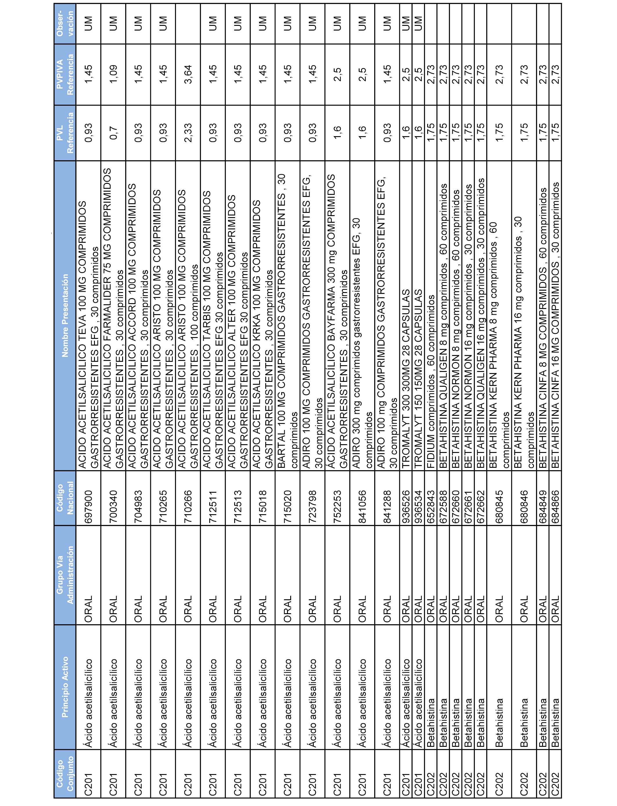 En el anexo 1 de esta orden se relacionan los conjuntos de referencia de presentaciones de medicamentos dispensables por oficinas de farmacia a través de receta médica oficial u orden de dispensación, con indicación del precio industrial de referencia y PVPIVA de referencia fijado para cada presentación.