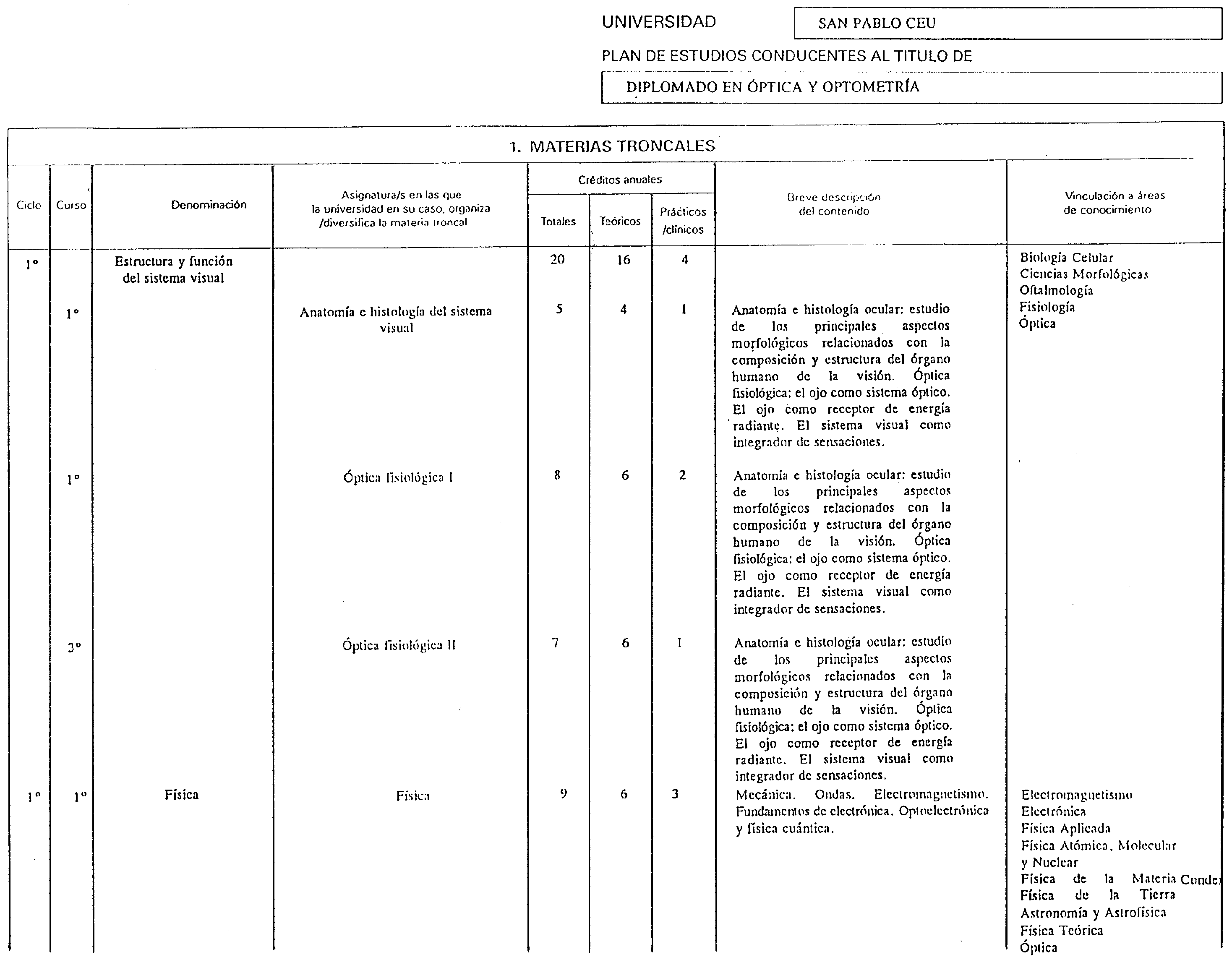 1. Se homologan los títulos de Diplomado en Fisioterapia y de Diplomado en Óptica y Optometría, de la Facultad de Ciencias Experimentales y Técnicas, y de Licenciado en Comunicación Audiovisual, de la Facultad de Humanidades, de la Universidad San Pablo-CEU de Madrid, reconocida como Universidad privada, conforme a los planes de estudios que se contienen en el anexo.