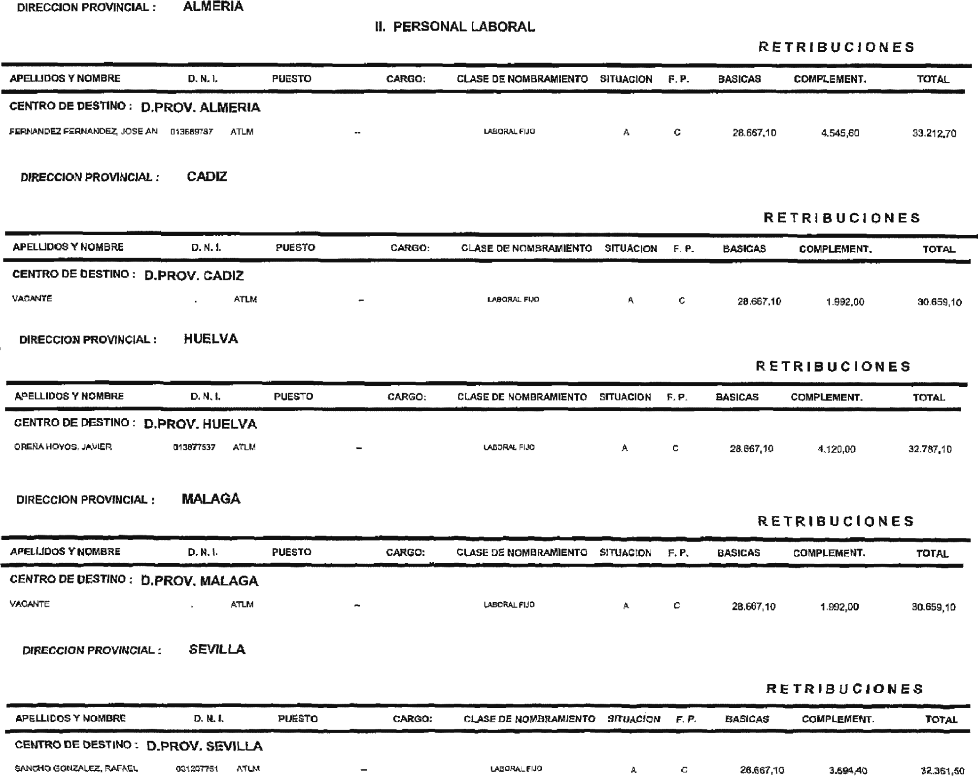 Relación nominativa de personal de empleo y formación ocupacional que se traspasa a la Comunidad Autónoma de Andalucia