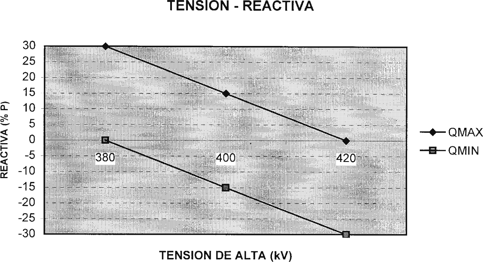 a) Para generadores con evacuación en el nivel de 400 kV se facilitarán 11 valores de generación y otros 11 valores de absorción de potencia reactiva distribuidos uniformemente en el rango comprendido entre 380 kV y 420 kV, inclusive, para valores de tensión separados entre sí 4 kV.