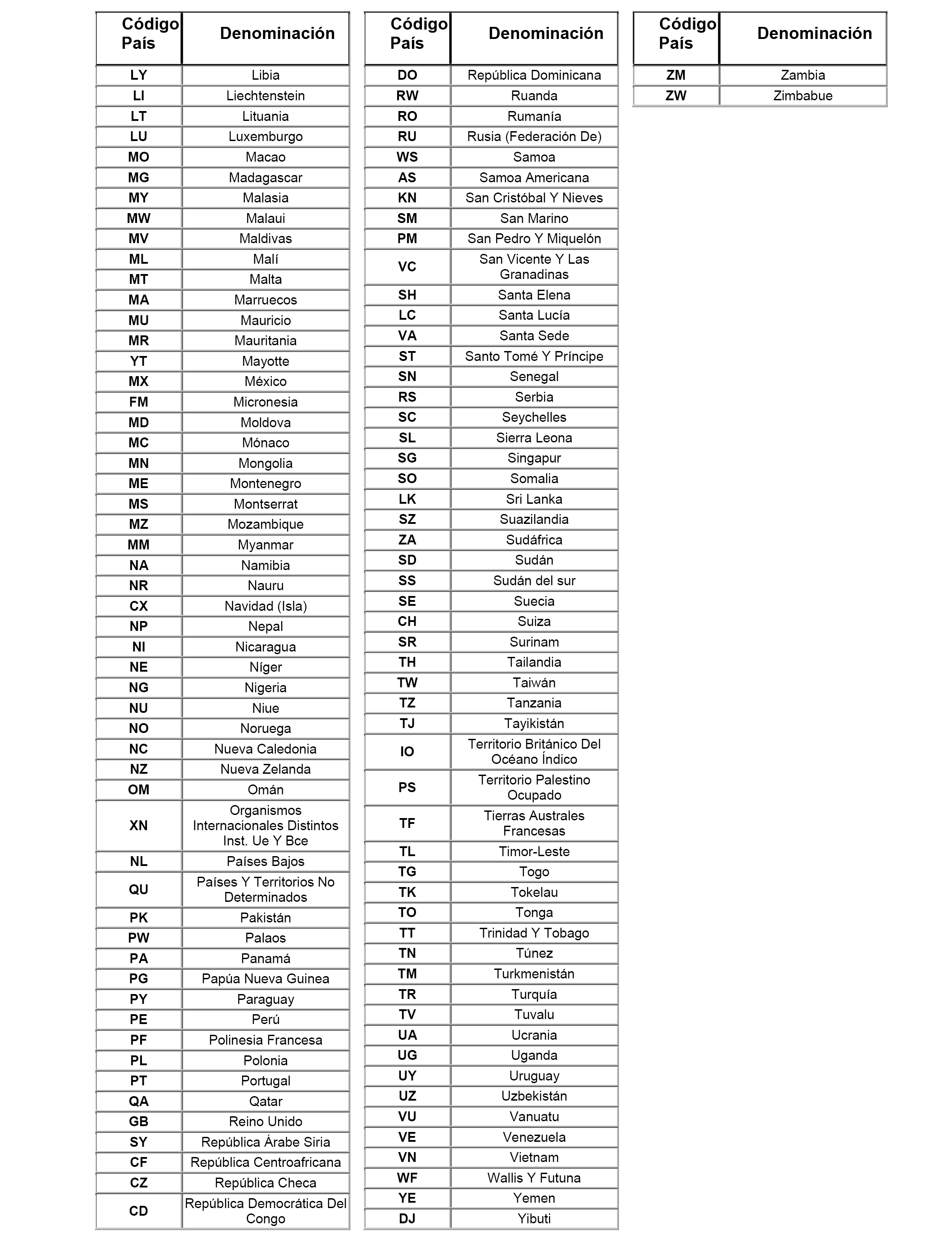 Se consignará el nombre del país del domicilio social de la empresa extranjera y su código, según la tabla 2 de códigos de países.