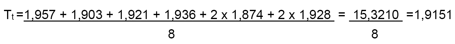 1,9151 x 90 % = 1,7236. Redondeado a dos decimales: 1,72.